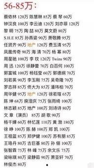 首先,我们来看看明星们的出场费。根据卓伟提供的价目表,明星们的出场费可谓是天差地别。一些当红一线明星的出场费甚至高达几千万,而一些新人和二三线明星的出场费则相对较低,一般在几万到几十万之间。